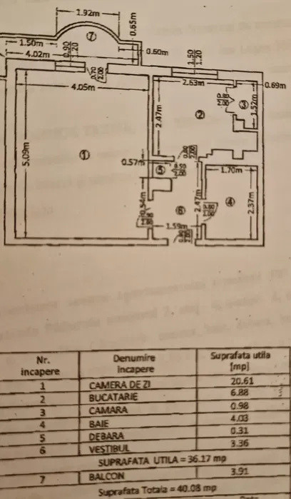 Alcatuit din: camere -1, bucatarie- 1, bai- 1, balcon- 1