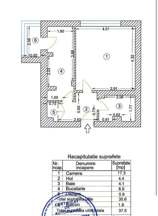 Dispune de o suprafata totala de 37.50 mp.