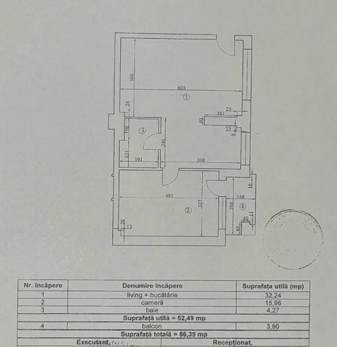 Alcatuit din: camere -2, bucatarie- 1, bai- 1, balcon- 1