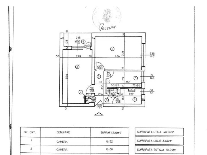 Alcatuit din: camere -2, bucatarie- 1, bai- 1, balcon- 1