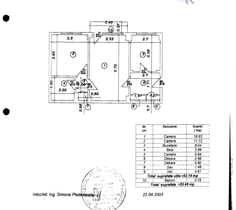 Dispune de o suprafata utila de 52.19mp + balcon 3.29mp - suprafata totala 55.48mp
