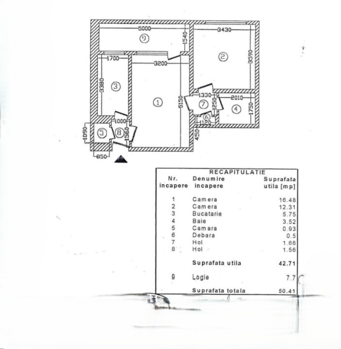 Dispune de o suprafata utila de 42.71 mp + balcon 7.70 mp.