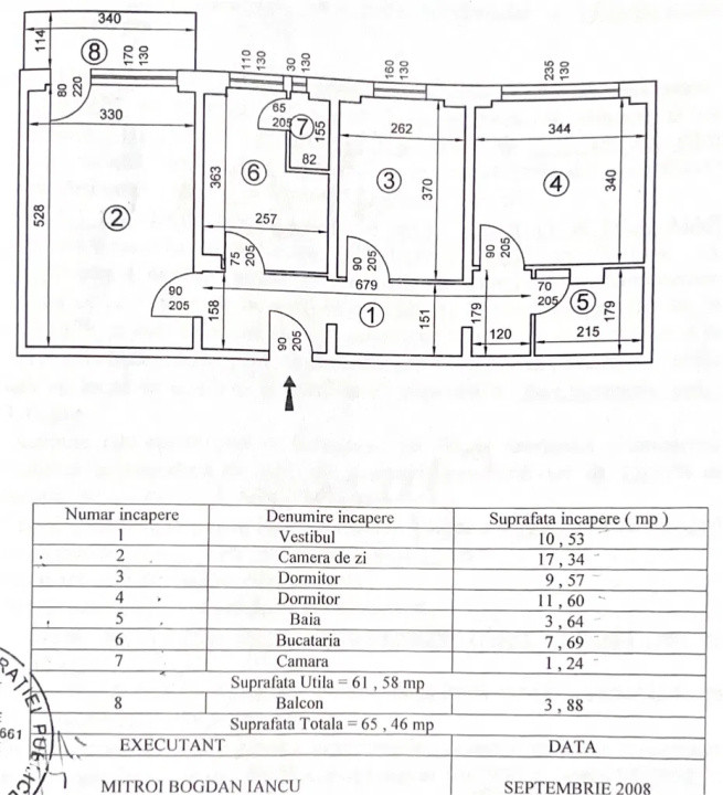 Alcatuit din: camere -3, bucatarie- 1, bai- 1, balcon- 1