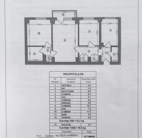 Alcatuit din: camere -3, bucatarie- 1, bai- 2, balcon- 1