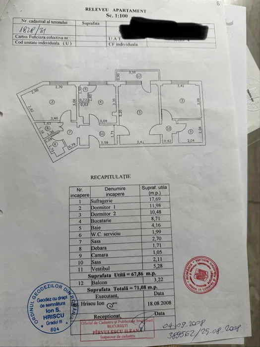 Alcatuit din: camere -3, bucatarie- 1, bai- 2, balcon- 1