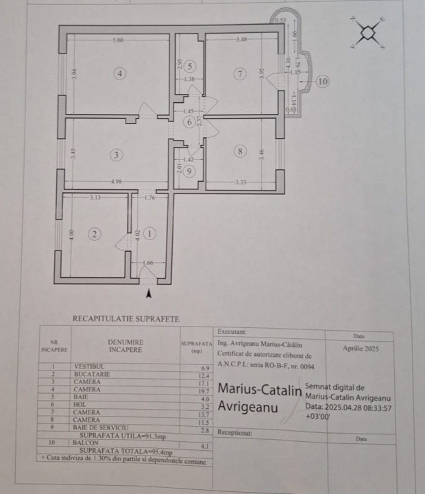 Alcatuit din: camere -4, bucatarie- 1, bai- 2, balcon- 1