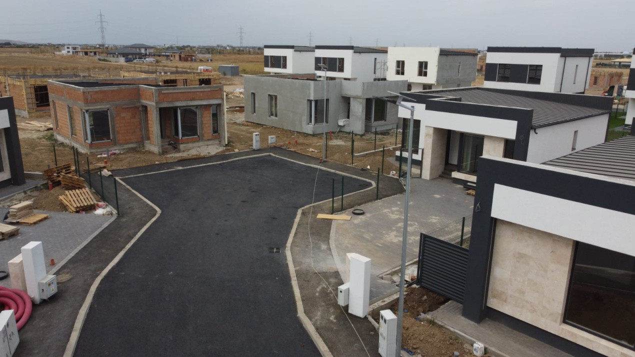 Accesul pe strada este privat, cu bariere iar parcare in fata curtii.