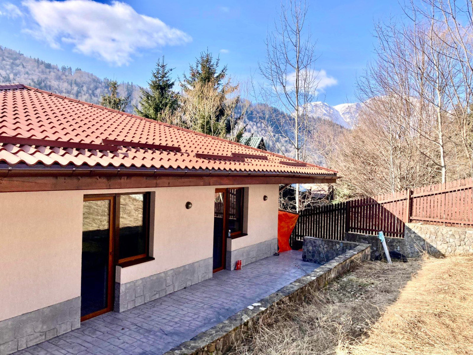 Terasa şi ferestrele mari sunt orientate astfel încât să profite de expunerea către munte, oferind vedere panoramică asupra crestelor, pădurilor şi văii.