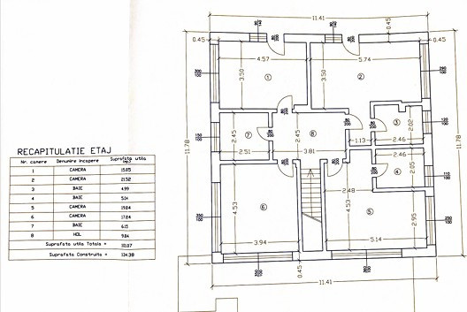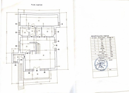 Suprafaţă construită: 388 m² – incluzând grosimi de pereţi, circulaţii, garajul subteran şi alte spaţii auxiliare.