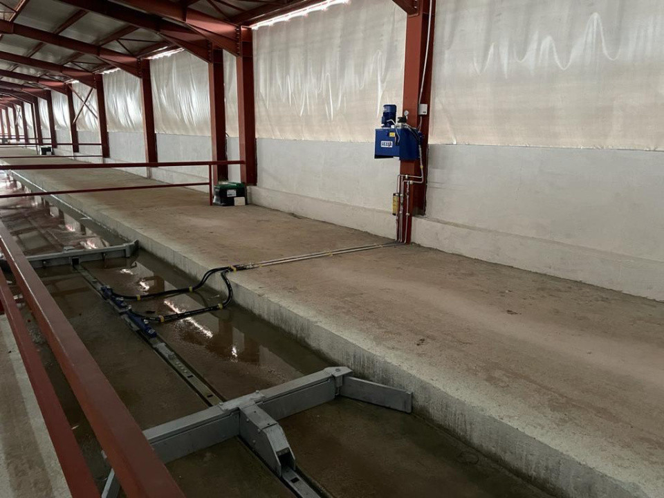 Mișcare: pardoseală betonată, jgheaburi de apă și dispozitive de autopansaj