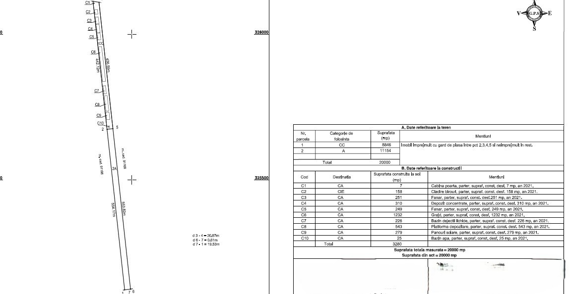 Teren în proprietate: 20.000 mp