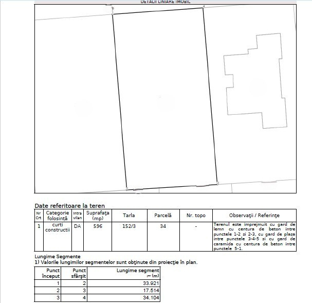 Suprafata totala a terenului este de 596 mp